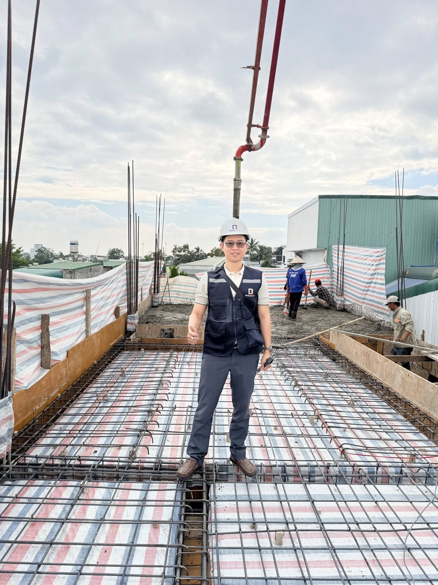 Đội kỹ sư của B+ Plus có mặt tại công trường mỗi ngày để kiểm tra vật tư, độ phẳng, độ thẳng, cũng như tiến độ thi công của từng đội thợ.