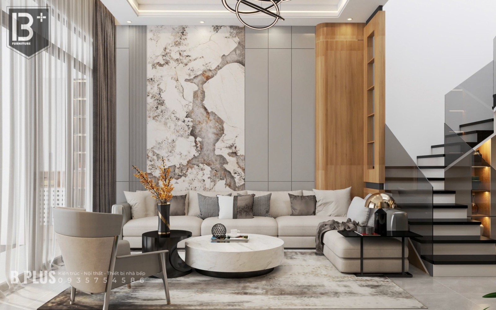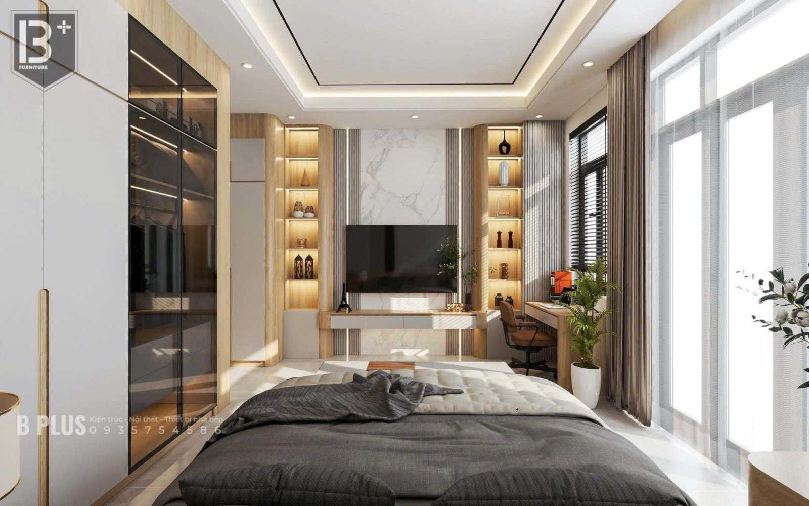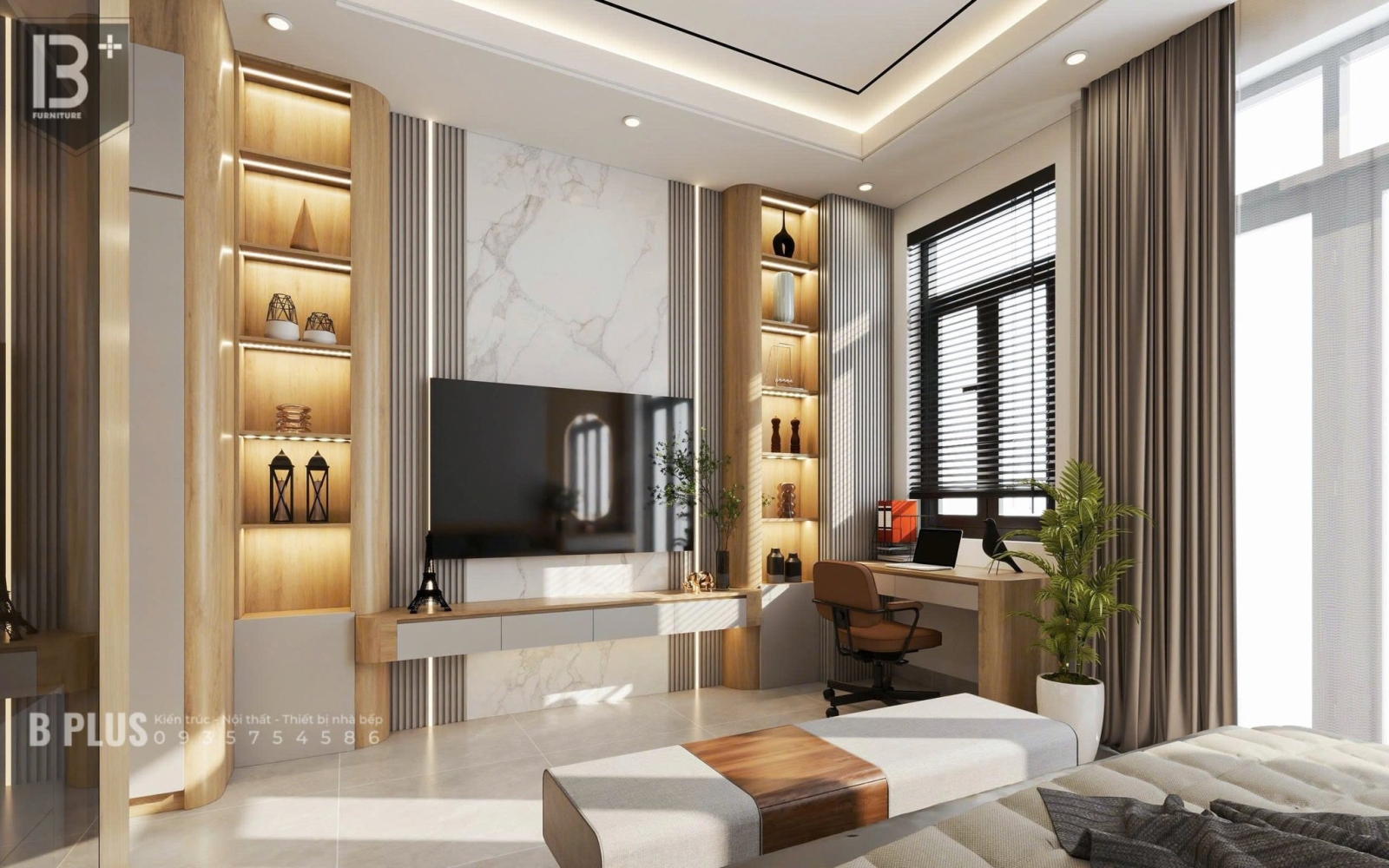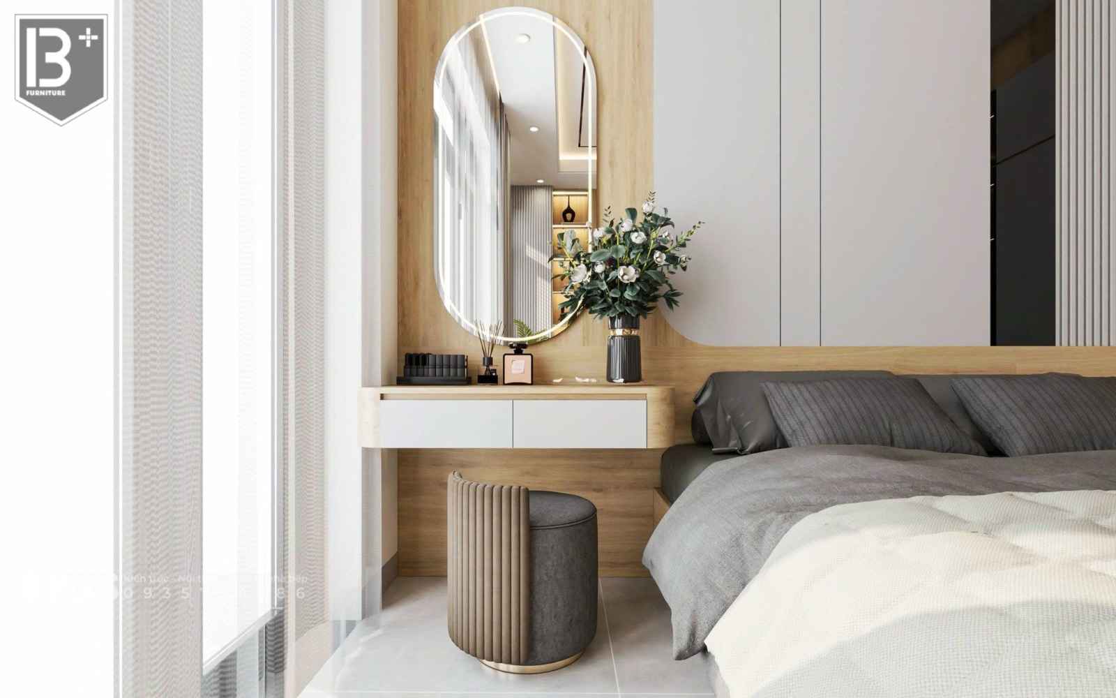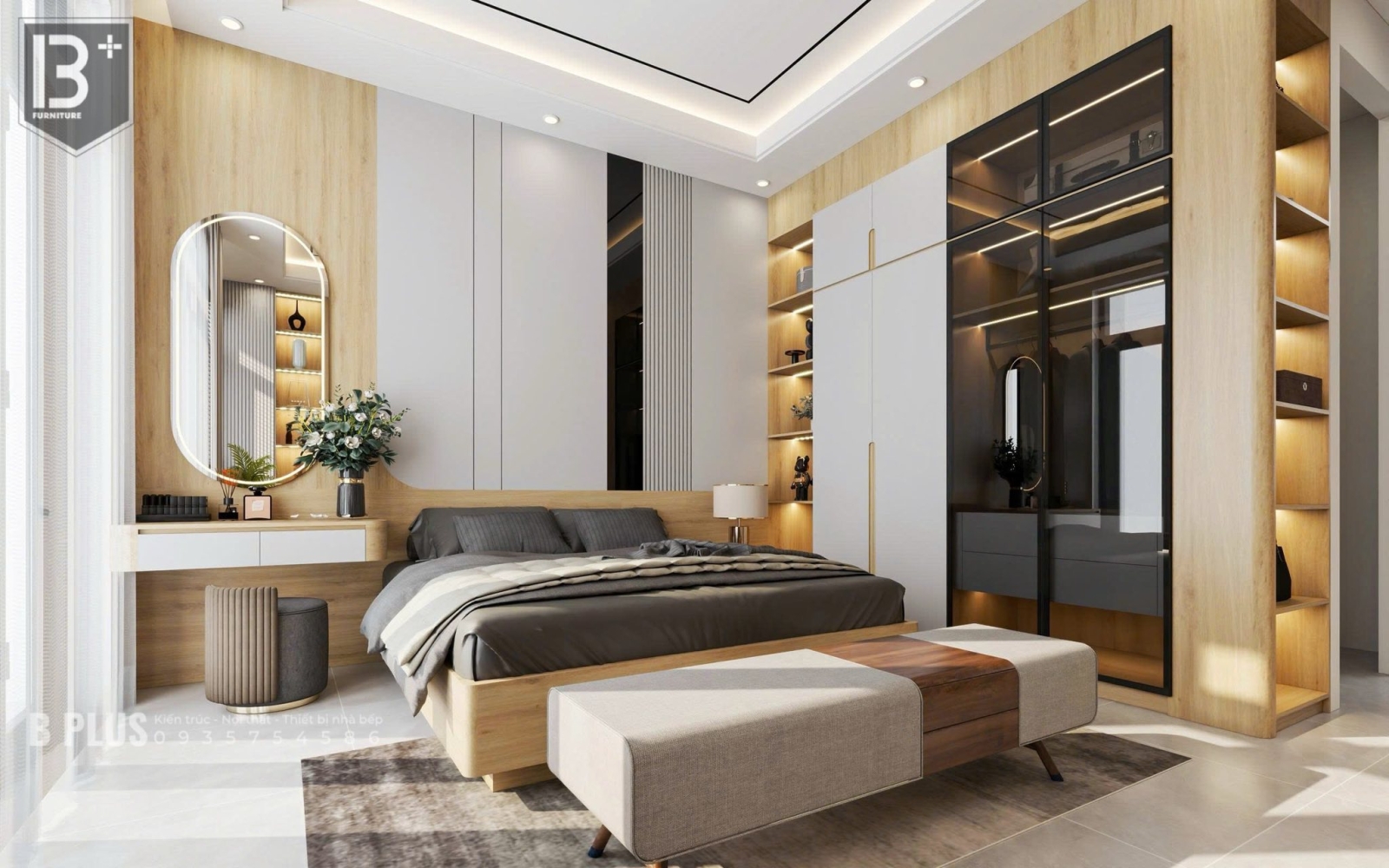 Phong cách: Hiện đại (Modern Luxury) với sự kết hợp tinh tế giữa tone gỗ ấm cúng và gam màu trung tính sang trọng.