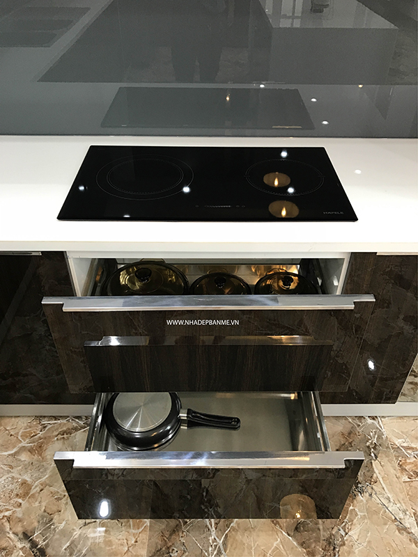 Thiết bị: bếp từ, lò nướng, hút mùi âm tủ, chậu – vòi