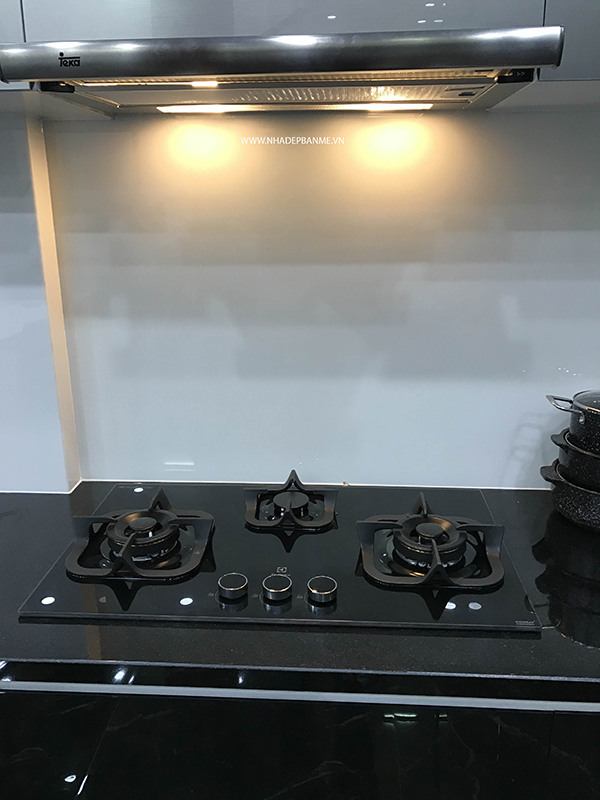Thiết bị: bếp gas âm tủ, lò nướng, hút mùi âm tủ, chậu – vòi